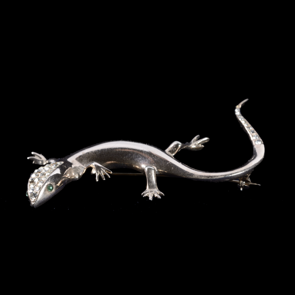 Spilla a forma di lucertola, in argento dorato e strass, U.s.a., 1942 c.