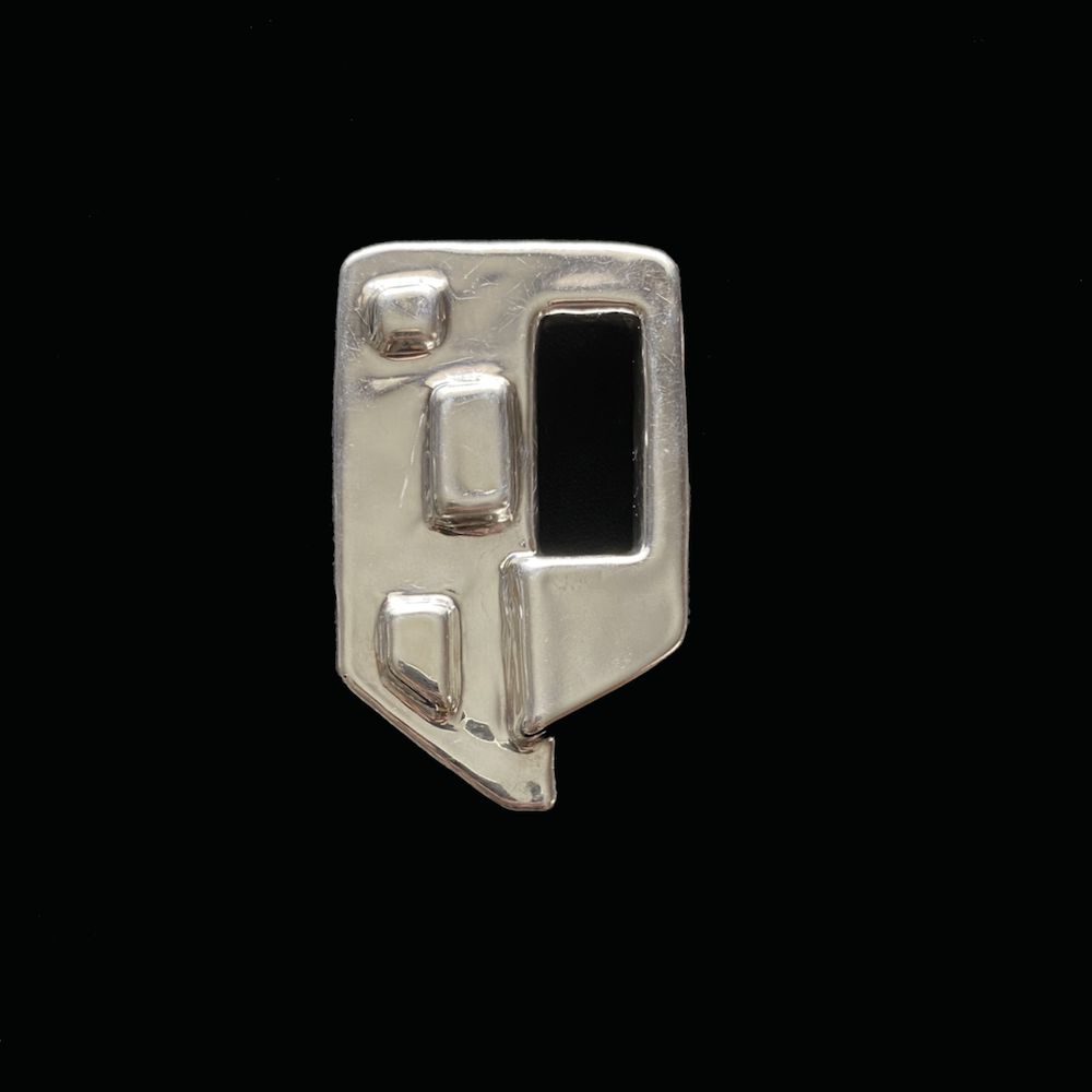 Spilla di forma geometrica, in stile modernista astratto, realizzata in argento sterling, firmata (firma illeggibile), punzonata «925 sterling»
