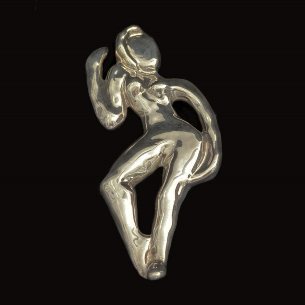 Spilla modernista in argento sterling 925 raffigurante un nudo di donna, punzonata «925», firmata (firma illeggibile), israele, 1980 ca.