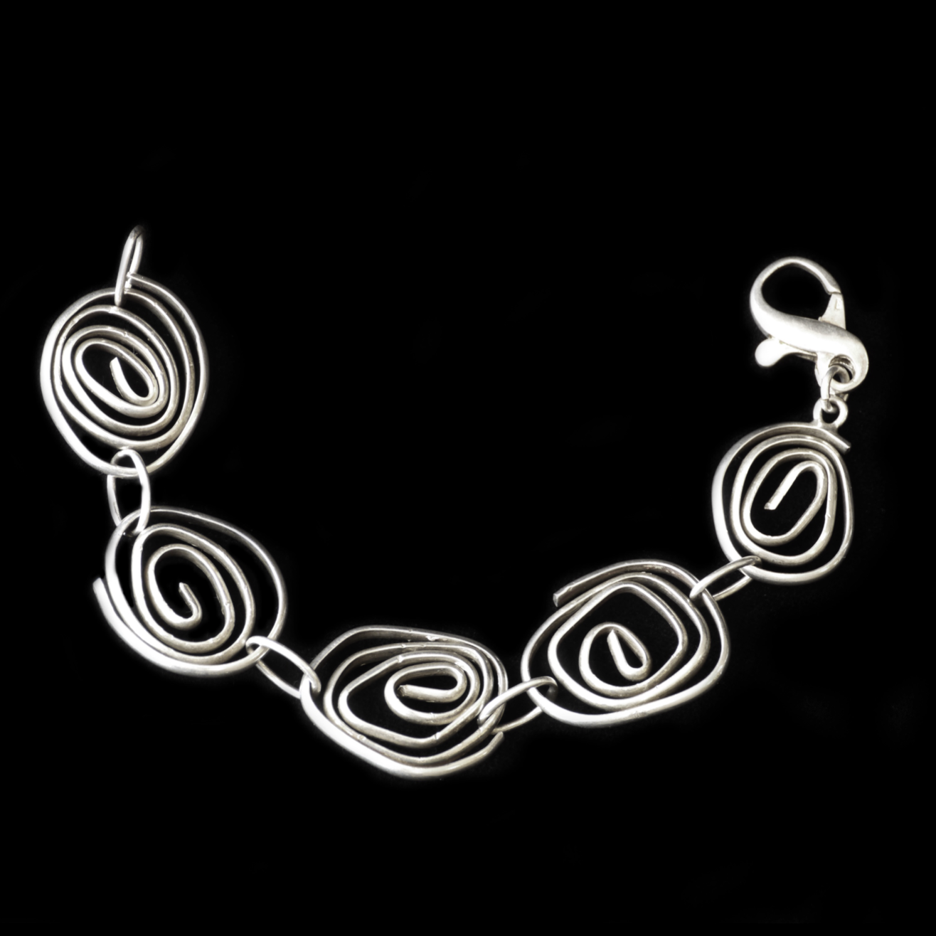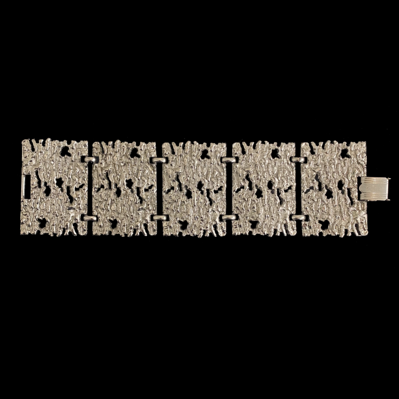 Bracciale modernista articolato in argento, maglie a forma di spirali, 1970 ca.