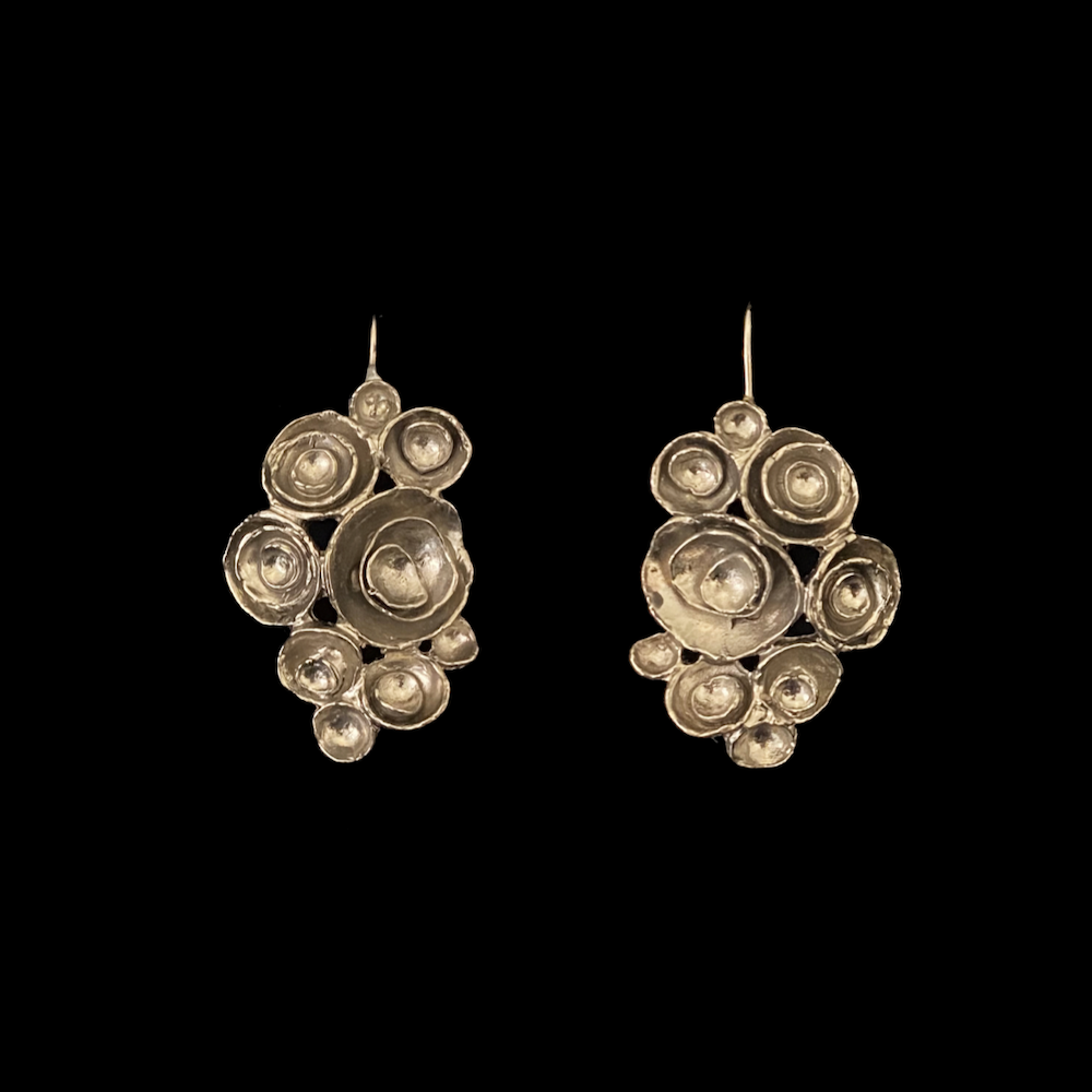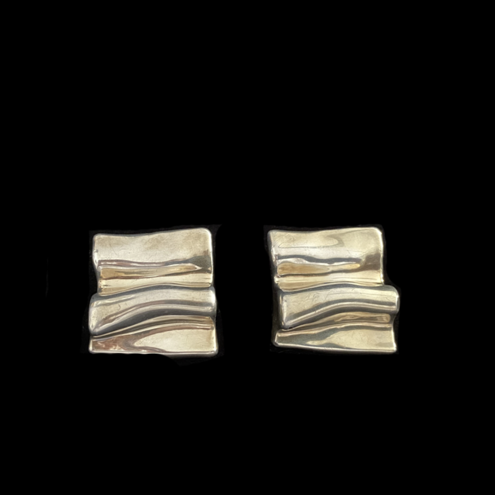 Coppia di orecchini con motivo astratto quadrato ondulato, realizzati con la tecnica dell’elettroformatura, in argento 925, punzonati «925 electroformed», 1980 c.