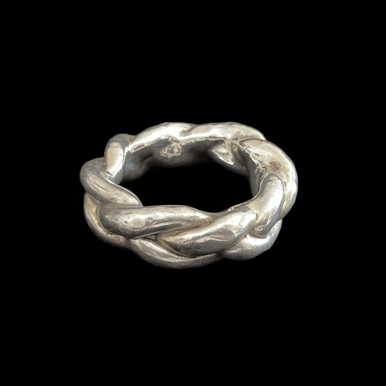 Bracciale rigido in argento 925 con motivo a intreccio, marchiato «925», 1980 c.