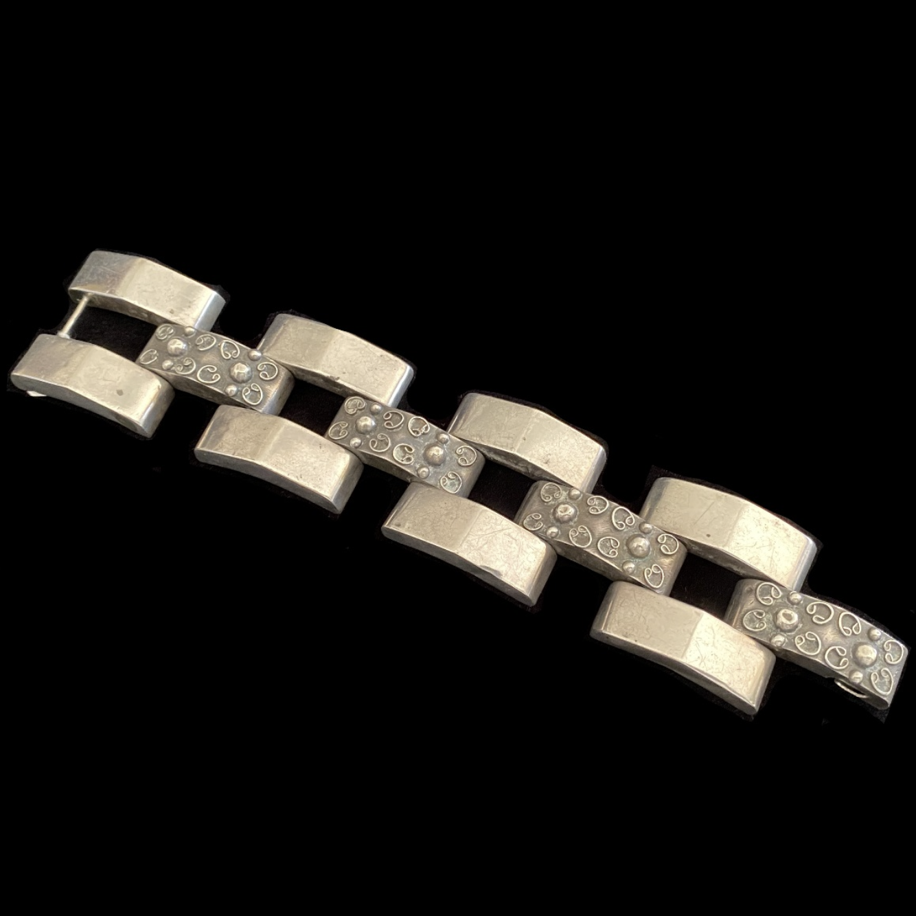 Bracciale tank in argento 925 punzonato “925 1177 ar”, mito preziosi, italia, 1970 ca