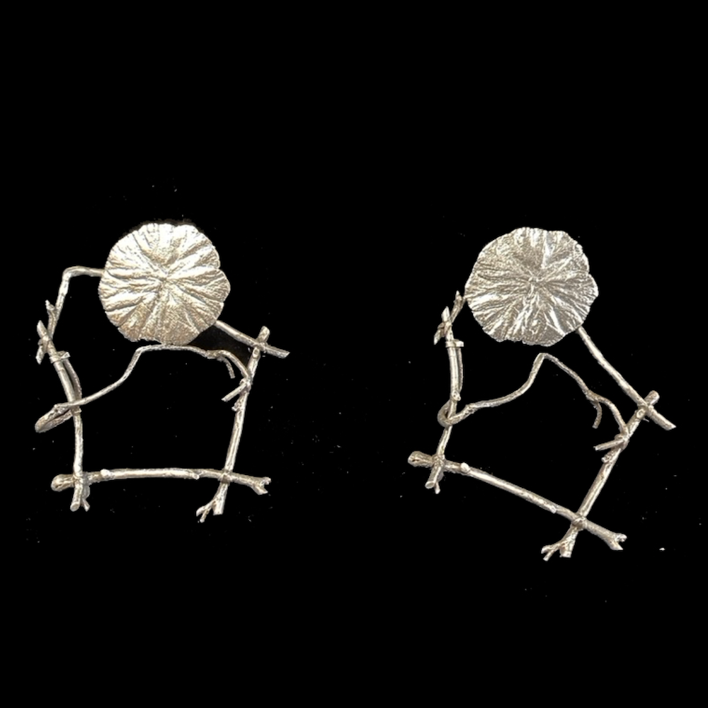 Coppia di orecchini in argento sterling con grande pendente formato da rami intrecciati, punzonati «Stephen Dweck», U.s.a. 1990 c.