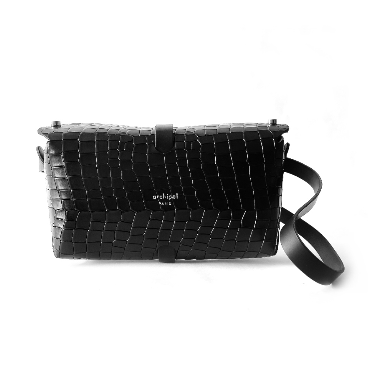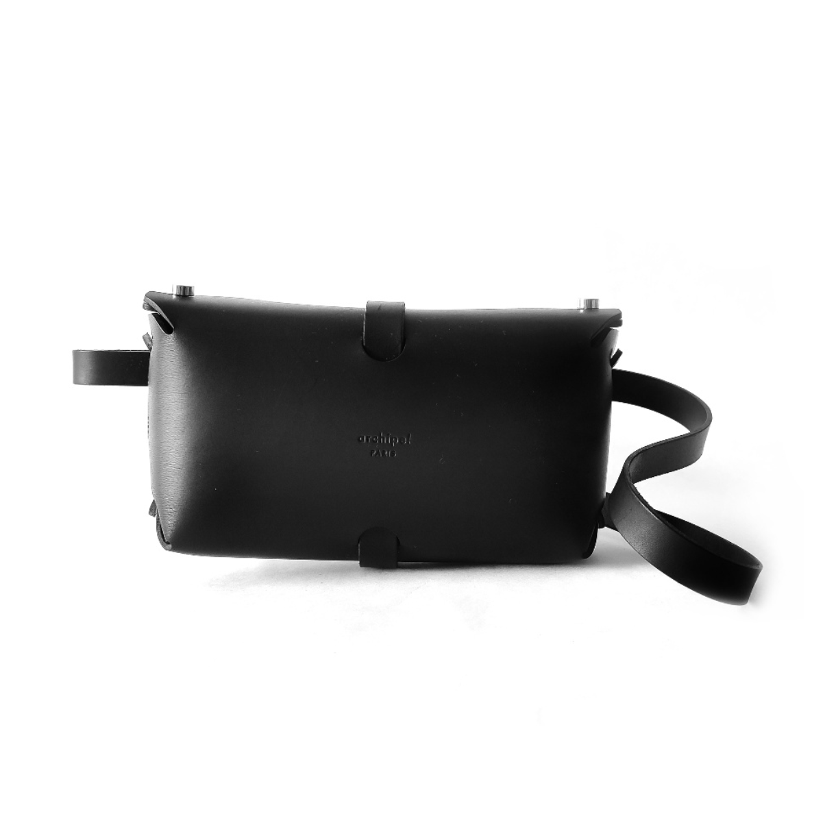 Bauletto in ecopelle nero, tracolla in techno webbing.