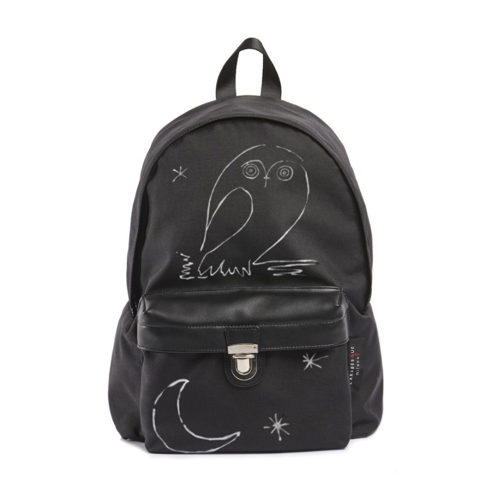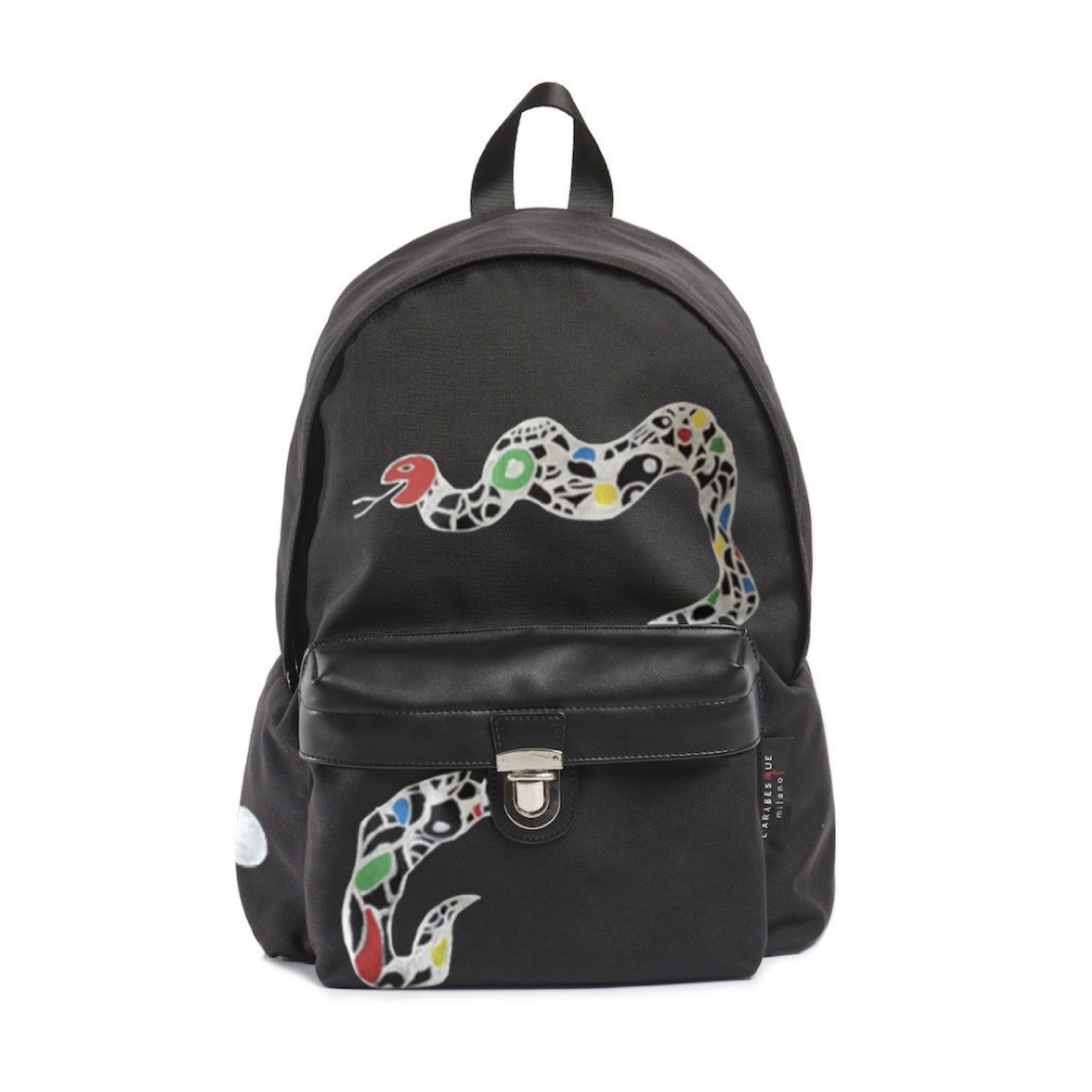 Zaino in nylon cordura nero dipinto a mano, dettagli, riporti e spallacci in ecopelle.