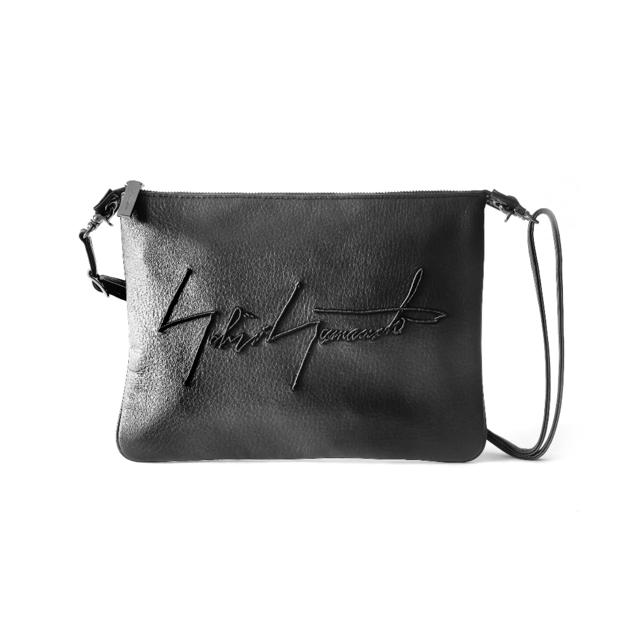 Borsa a tracolla in pelle nera con logo Yohji Yamamoto.