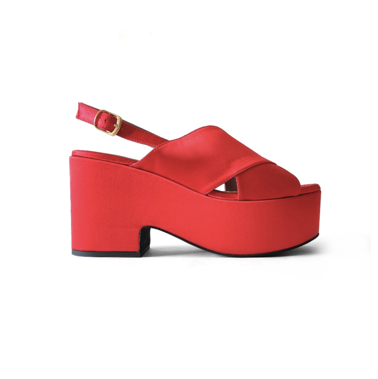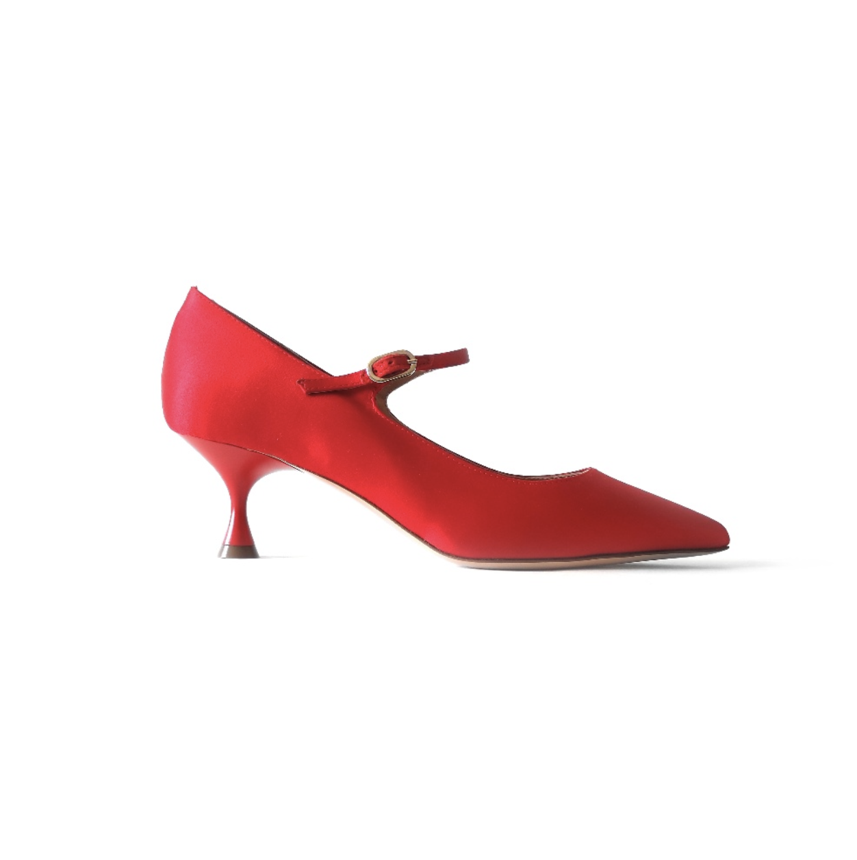 Décolleté con tacco altezza 6 cm in raso rosso.