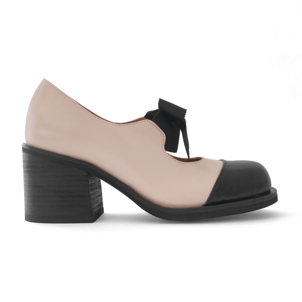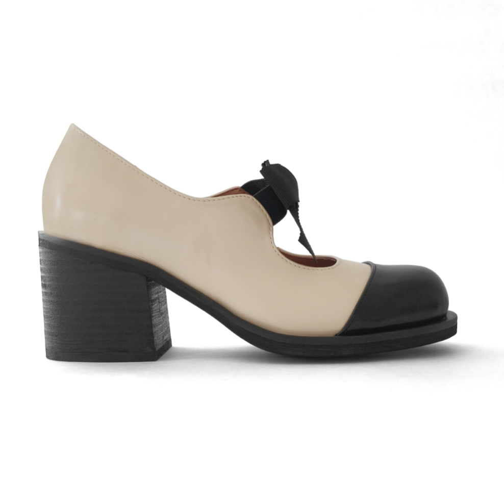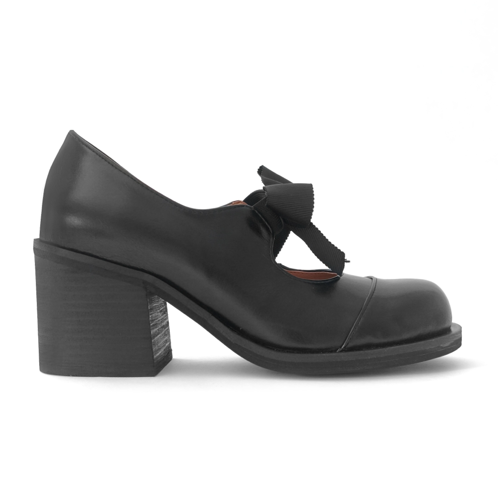 Mary jane chunky, tomaia in nappa e dettagli di fiocchi in grosgrain