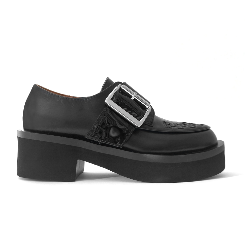 Monk buckle chunky creeper, tomaia in vitello spazzolato e vernice, fondo in gomma