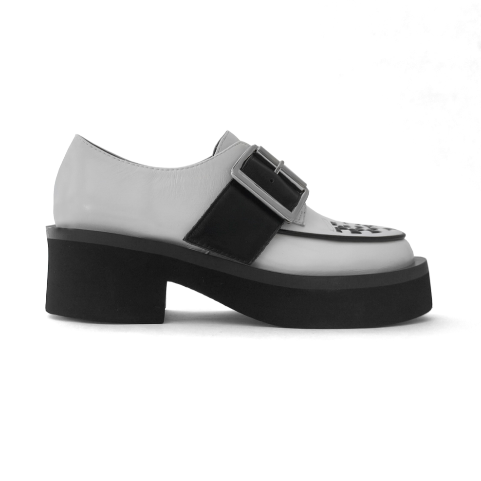 Monk buckle chunky creeper, tomaia in vitello spazzolato bicolor, fondo in gomma