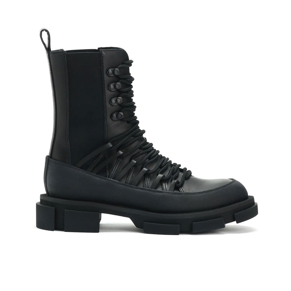 Combat boot in pelle nera e maxi suola in gomma