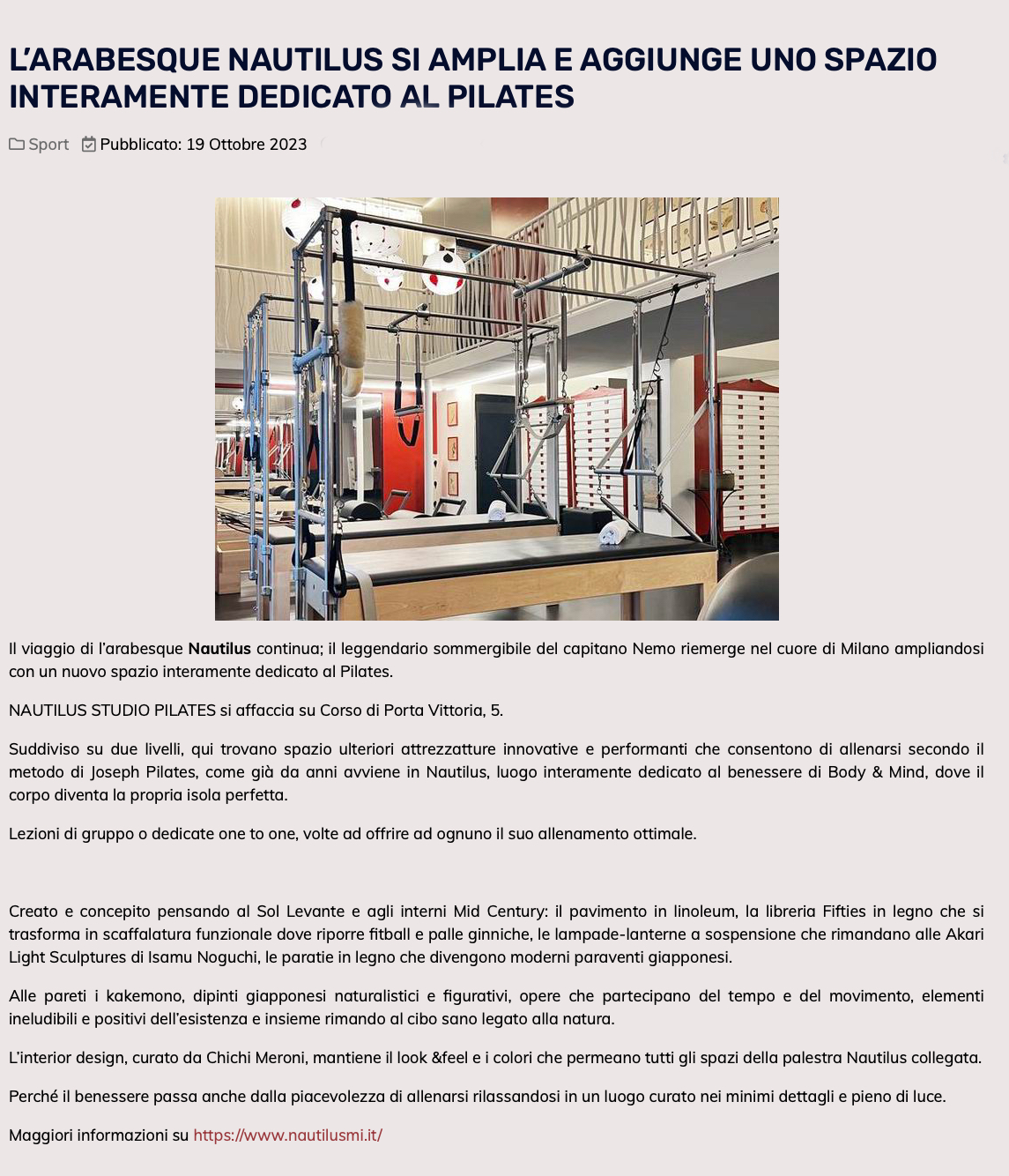 L’ARABESQUE NAUTILUS SI AMPLIA E AGGIUNGE UNO SPAZIO INTERAMENTE DEDICATO AL PILATES